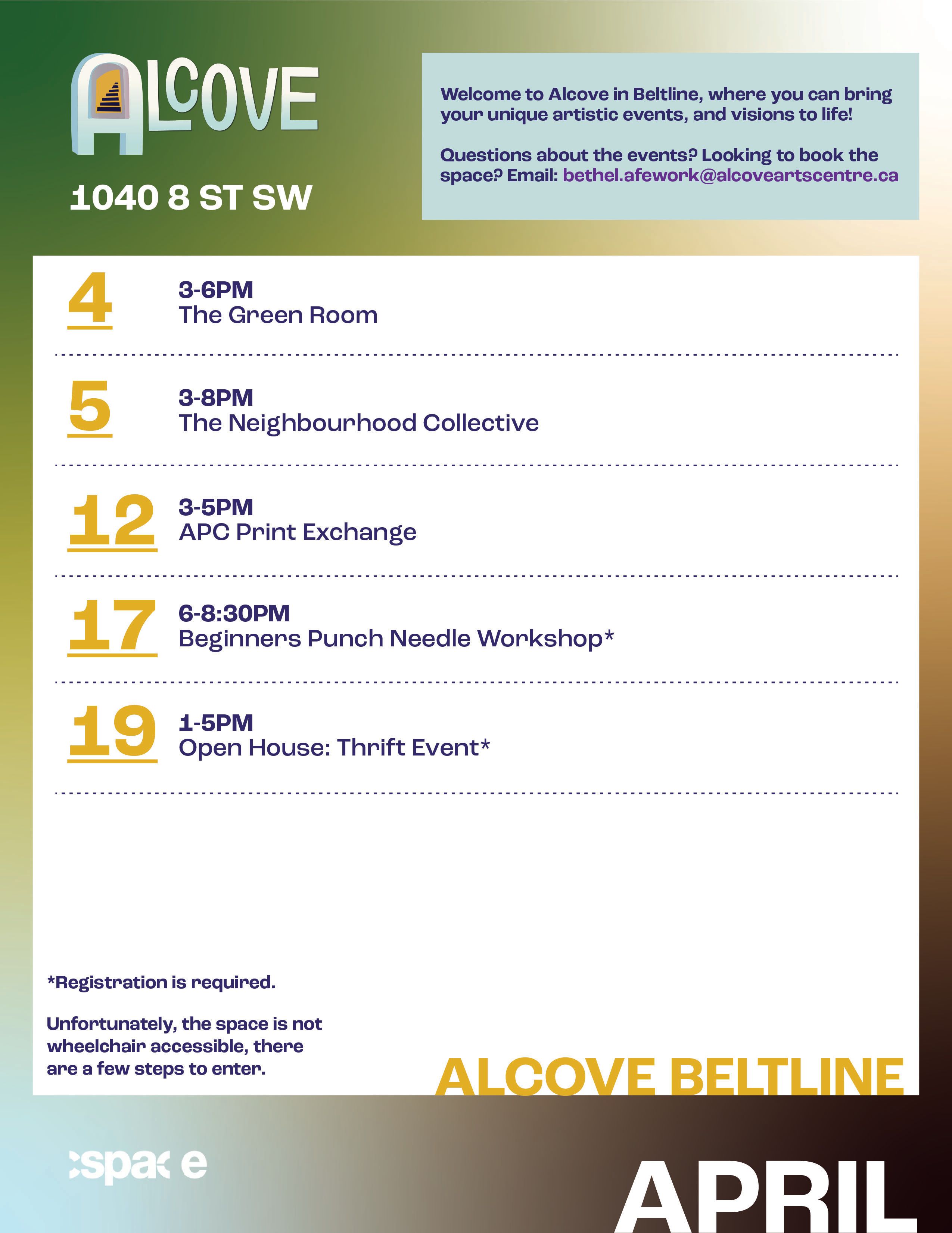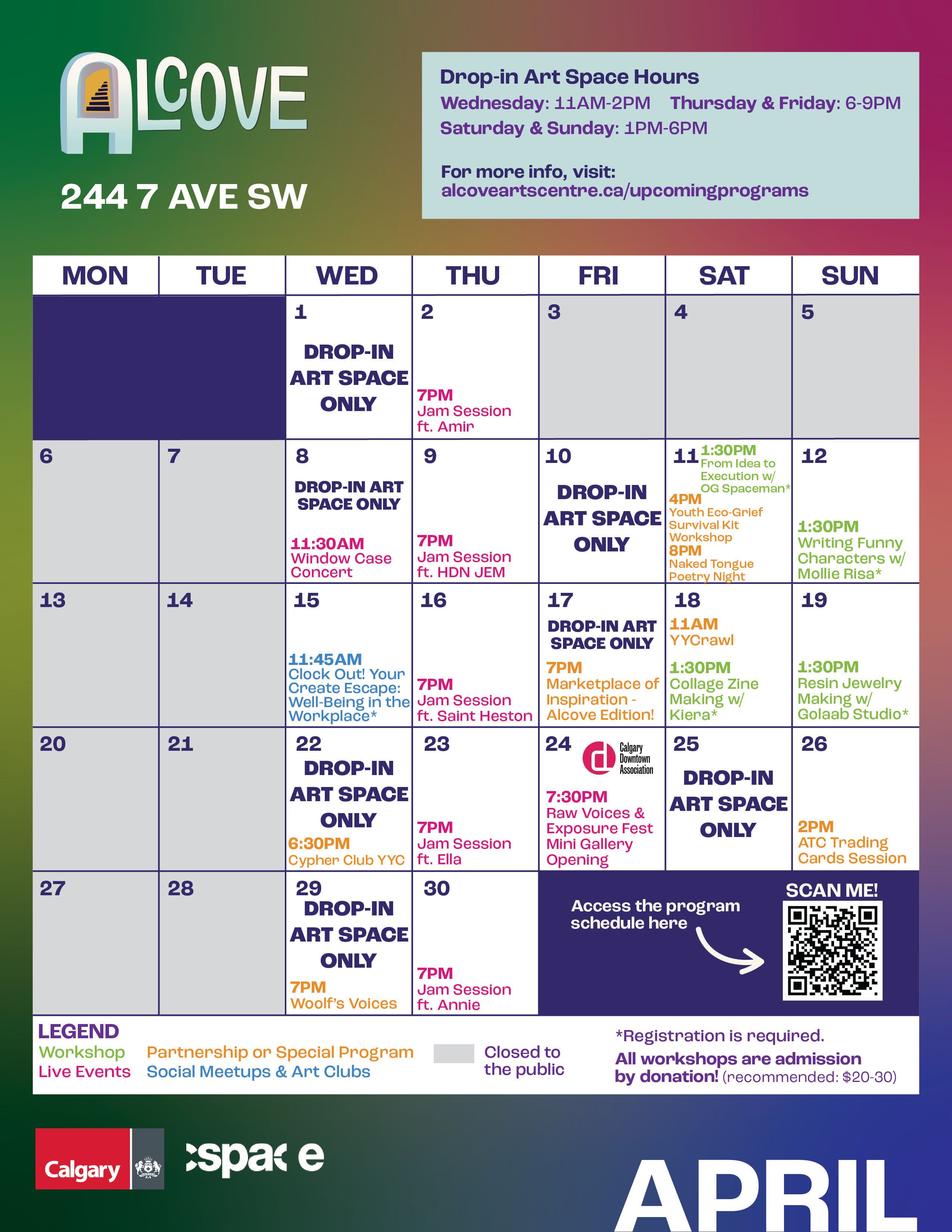 Sunday, April 12 from 1:30 to 3:30 PM @ Alcove Core 244 7 Ave SW