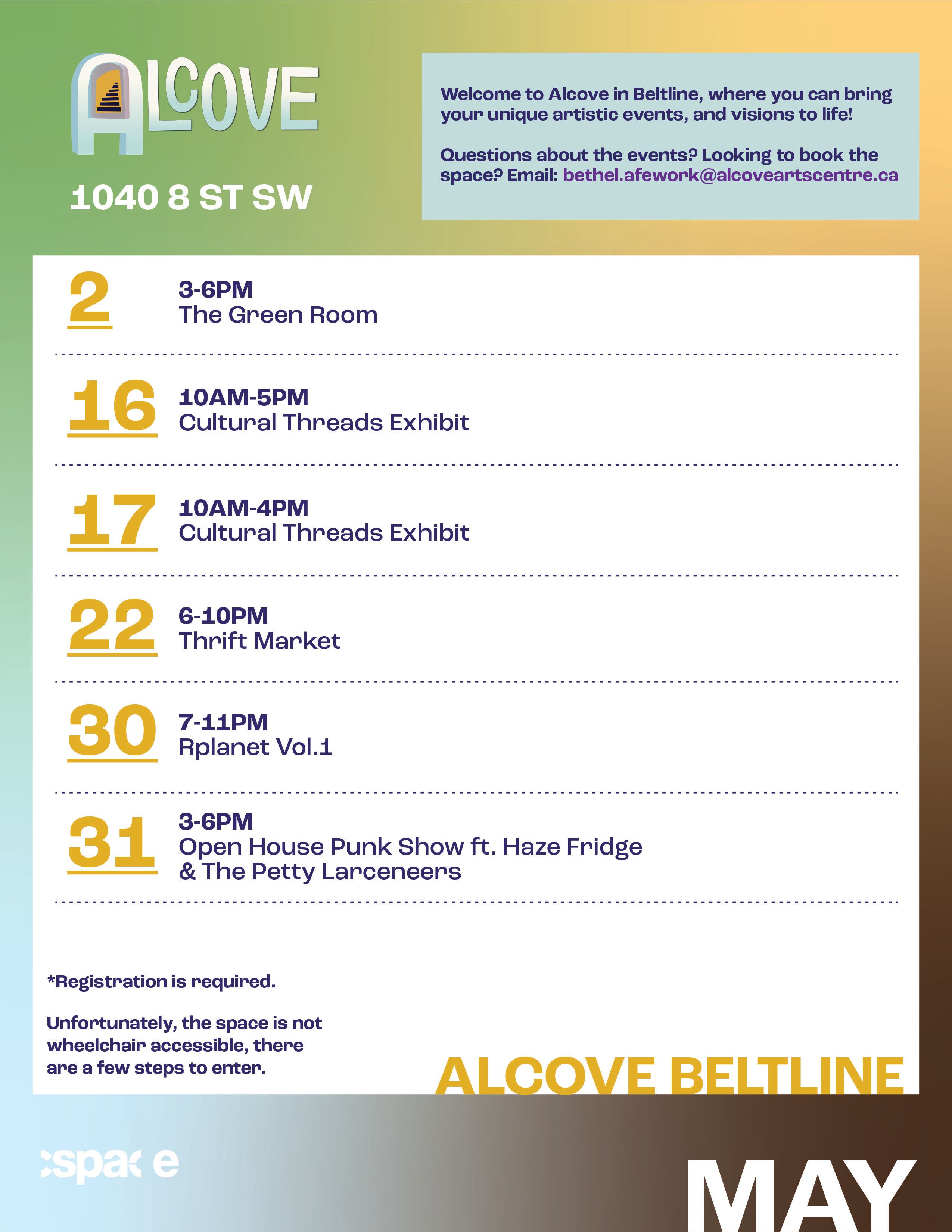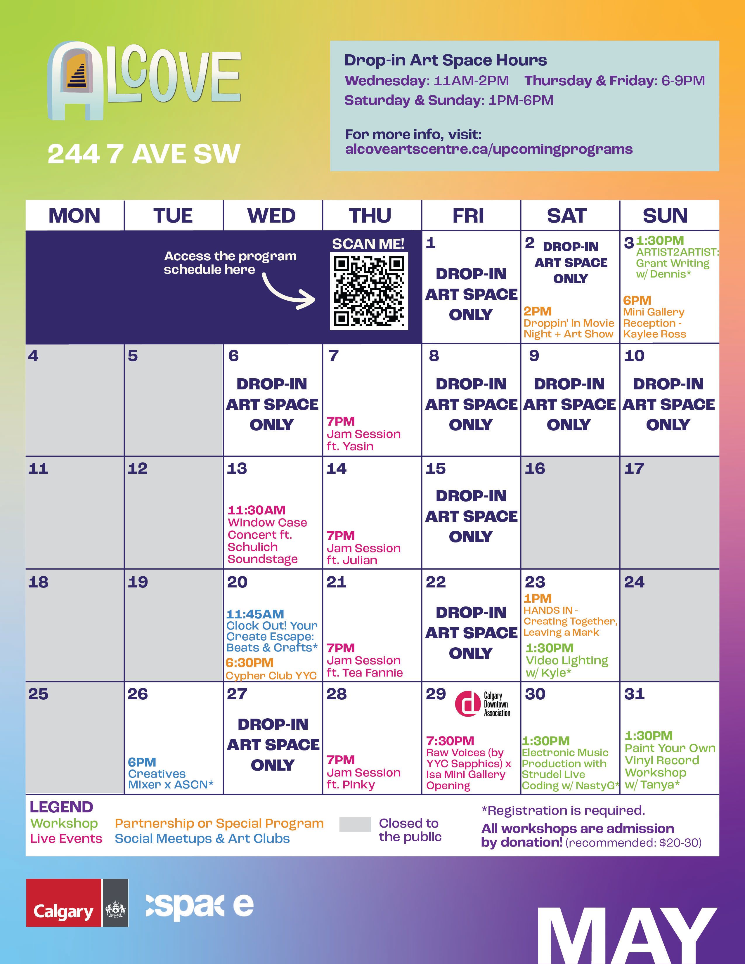 Sunday, May 3 from 1:30 to 3:30 PM @ Alcove Core 244 7 Ave SW